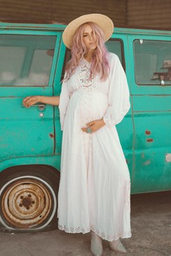 "Zippora" Cut-Work Embroidery Maternity Maxi Dress - Baby Pink