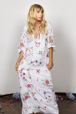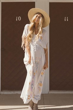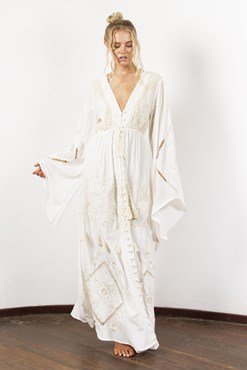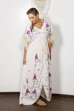 "La Bonita" Women's embroidered bohemian kaftan dress - white