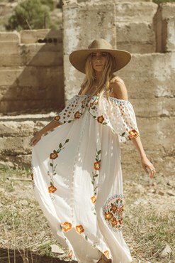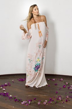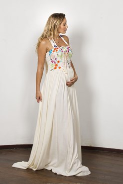 "Wonder Years" Women's embroidered maxi dress - Ivory