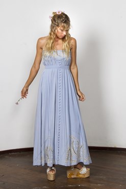 "Wonder Years" Women's embroidered maxi dress - 'Baby Baby' blue