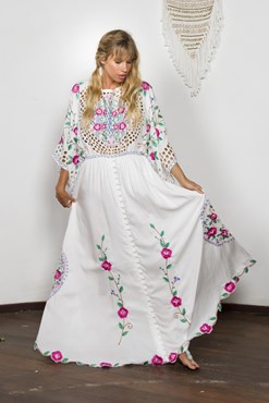 "Kiss Chasey" Women's crochet and embroidered maxi dress