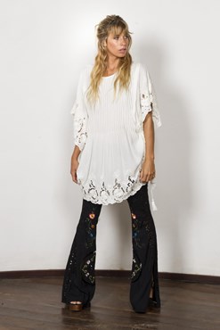 "CLEO" Women's embroidered duster - Ivory with Ivory