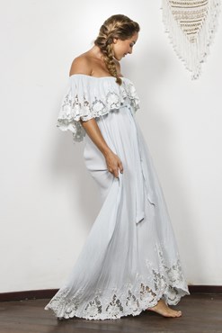 "Blue Lagoon" Women's crochet and embroidered maxi dress - Ivory