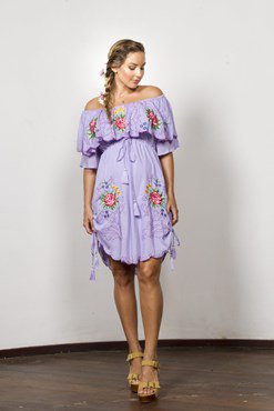 "Georgies Girl - Trapeze" Women's embroidered maxi dress - Lavender