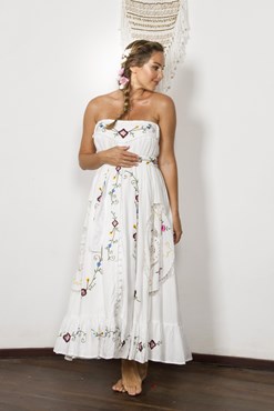"Papillon" Embroidered strapless maternity maxi dress - Cream with navy blue